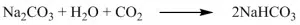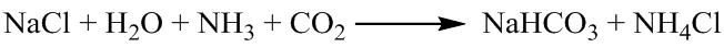 با افزودن مقدار بیشتری گاز دی اکسید کربن به محلول حاصل، بی کربنات سدیم تولید می شود که به دلیل غلظت بالا ته نشین می گردد: